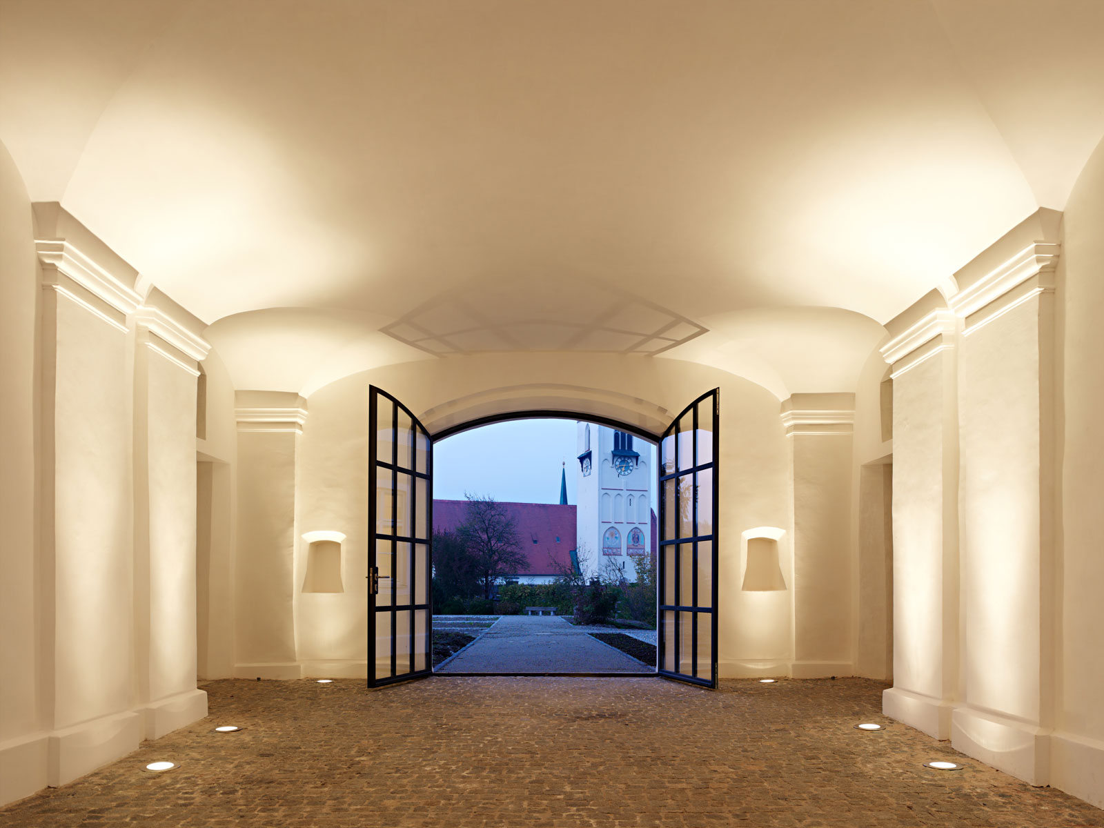 Die als „sala terrena“ wiederhergestellte, überwölbte Eingangshalle mit Wandpilastern bietet vom Platz einen gerahmten Durchblick auf die Wallfahrtskirche. Der prächtige Eingang wird auch für Veranstaltungen genutzt. Zusammen mit verbesserter Dämmung erreicht die neue Hasutechnik aktuellen Energiestandard. Das Gebäude wurde mit dem Fassadenpreis Erding 2008 ausgezeichnet.