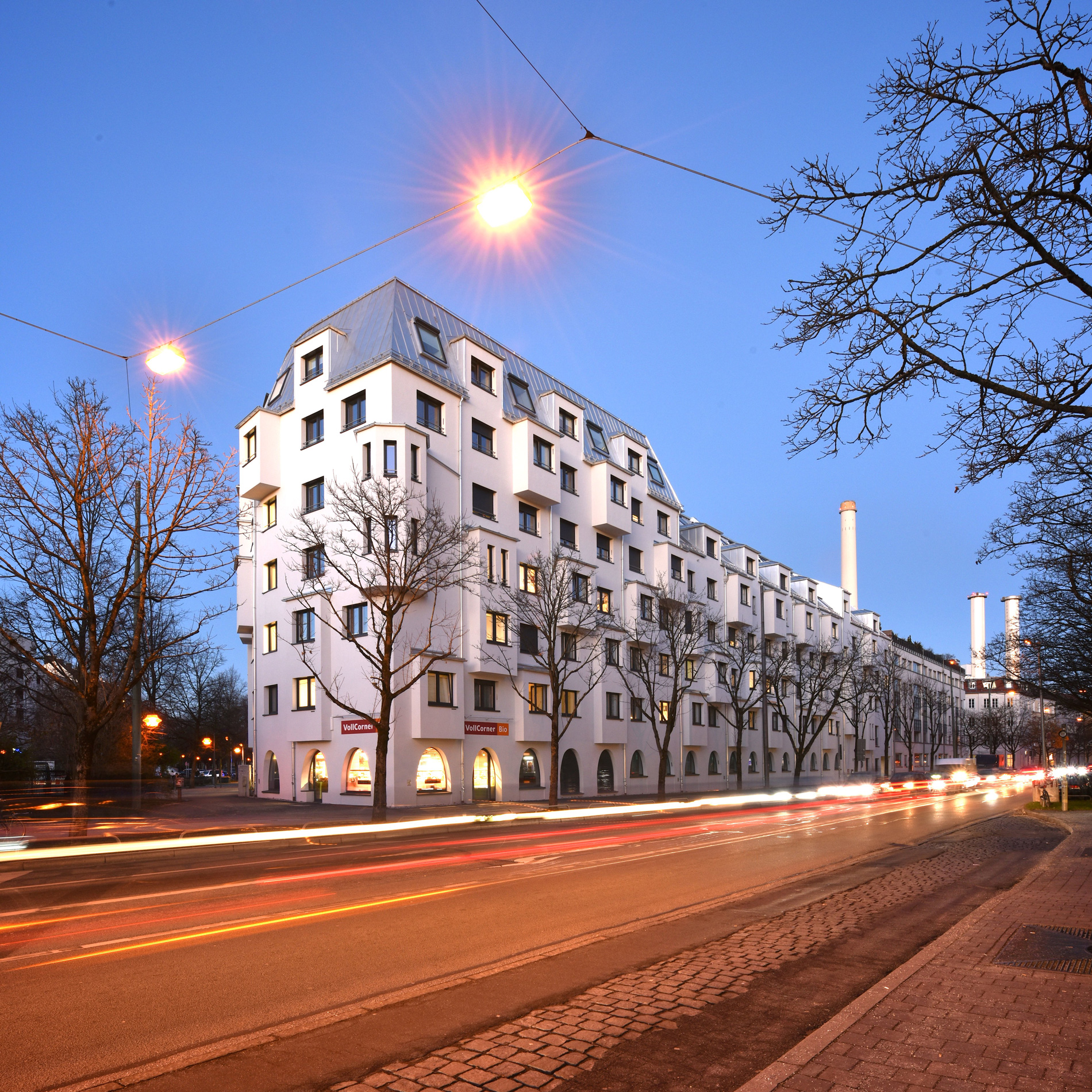 Neubau eines Studentenwohnheims in Passivhausstandard und Biosupermarkt mit Gastronomie.